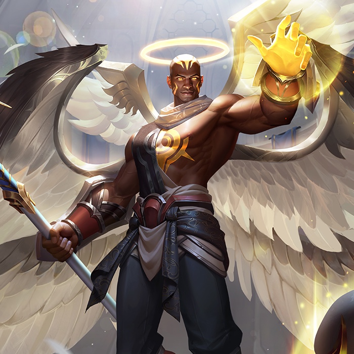 A paladin healer who was killed during the second demon invasion, resurrected as an angel by the goddess Oriani. Returning to Vathria with unparalleled strength, he aids the world in combating demons, embodying his sacred resolve.