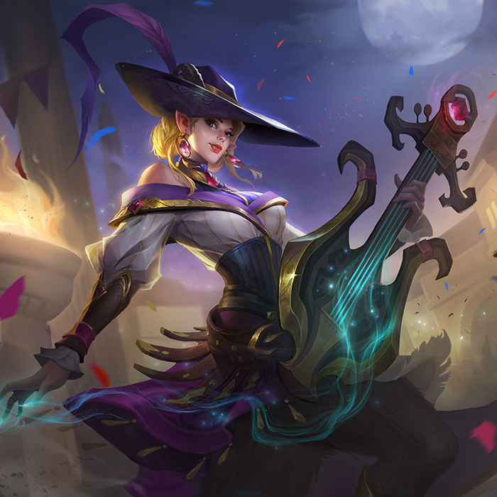 Lyra plays a beautiful melody, which charms all enemies for 7 seconds. Charmed enemies will wake up when they take damage.